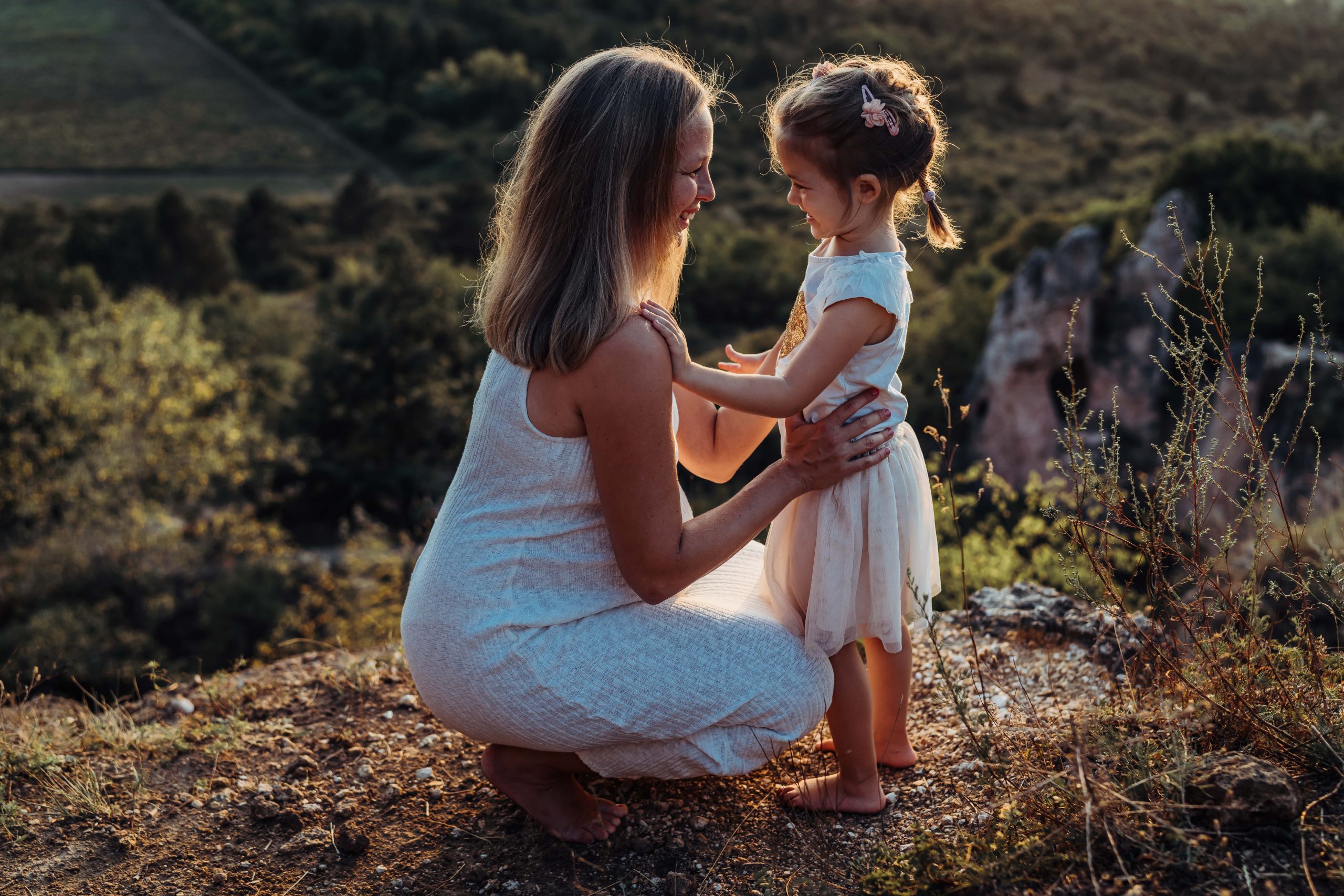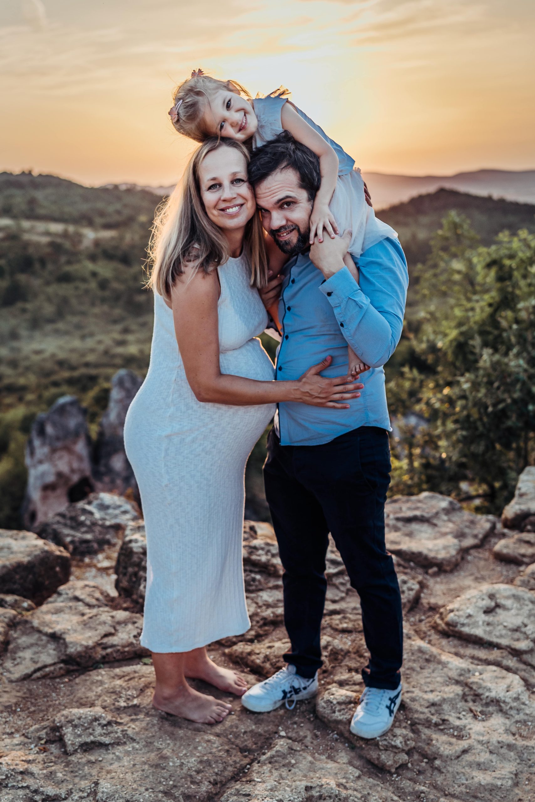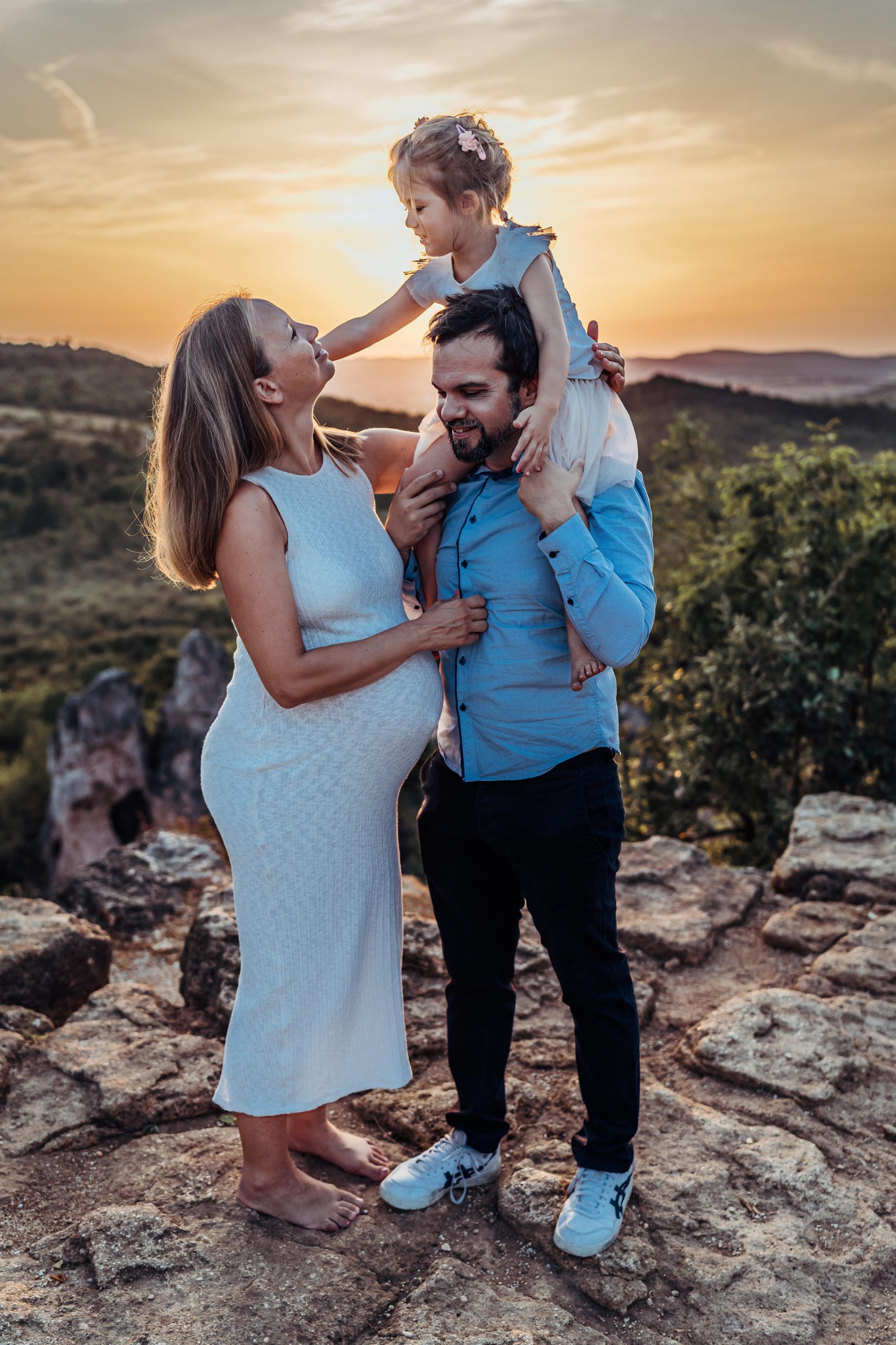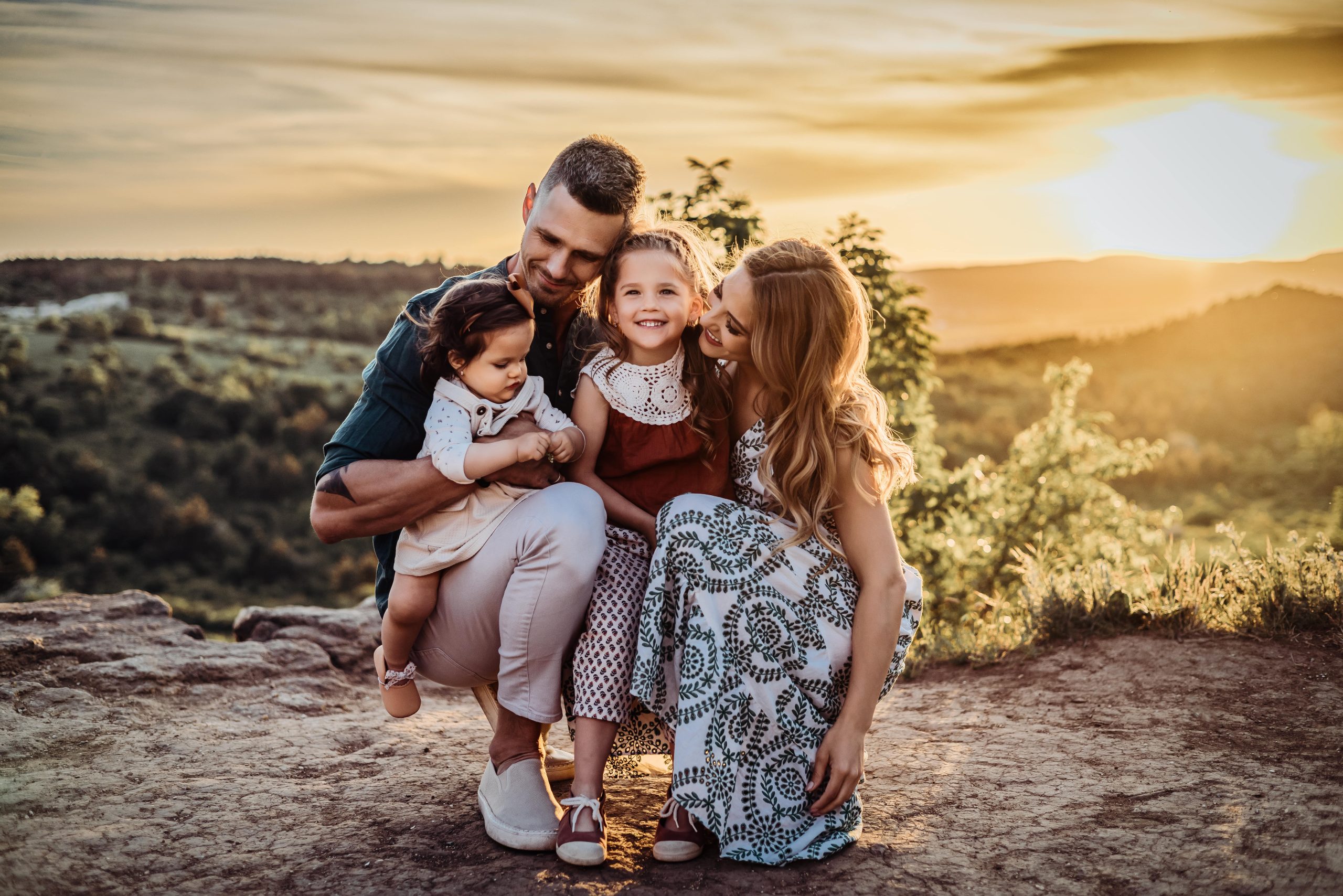 Kora tavasztól késő őszig mindenképp azt javaslom, hogy kültéren, a természetben, naplementében, az aranyórában fotózzunk. Az aranyóra a naplemente előtti nagyjából egy órát jelenti, amely nyári időszakban kisgyerekkel elég késői időpontnak tűnhet, viszont mindent kárpótol a természet, a gyönyörű tájak, illetve a csodálatos és megismételhetetlen színek, tökéletes hangulatot teremtve ezáltal a képeknek.